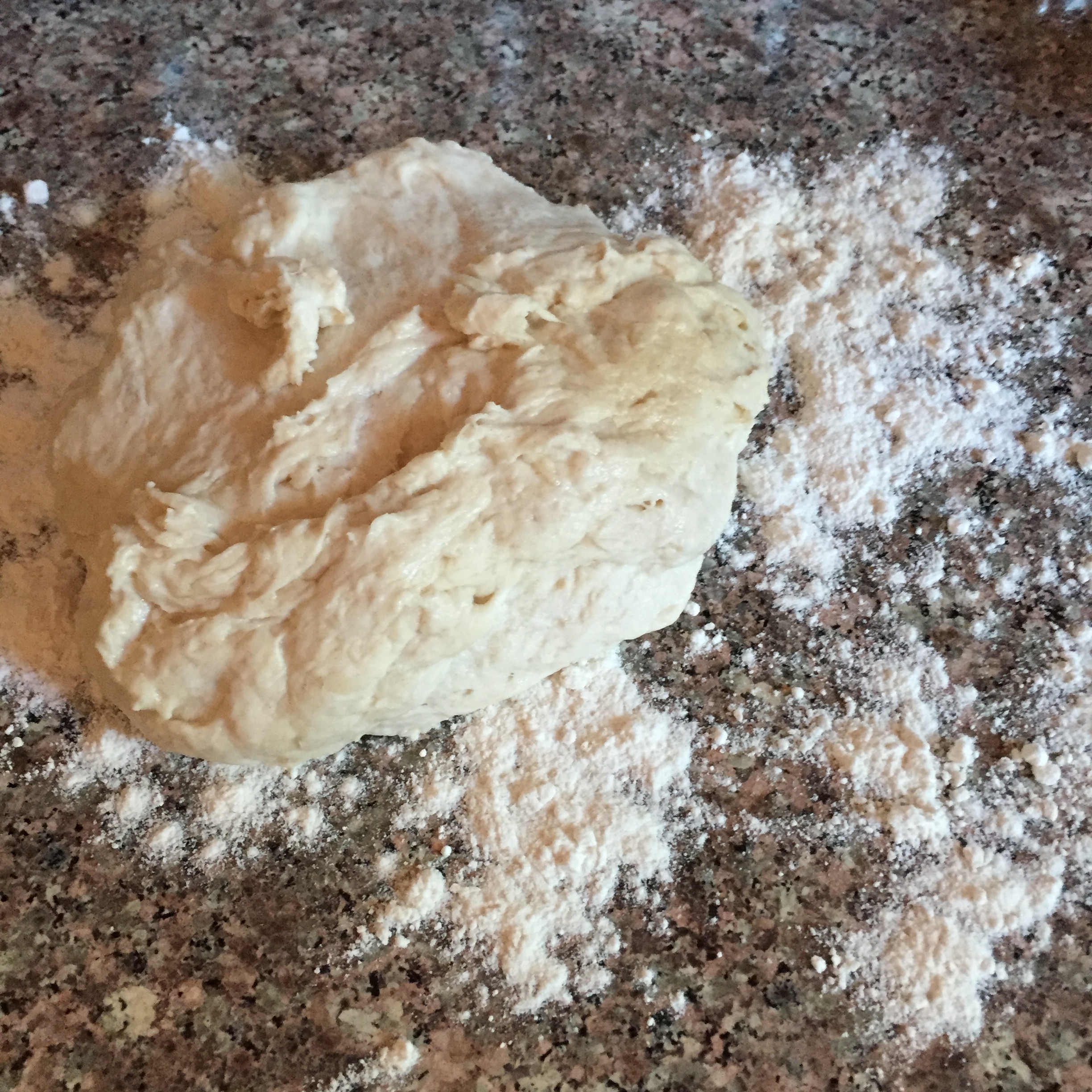 - Turn dough out onto floured surface and knead for about a minutes until dough is soft and smooth to the touch