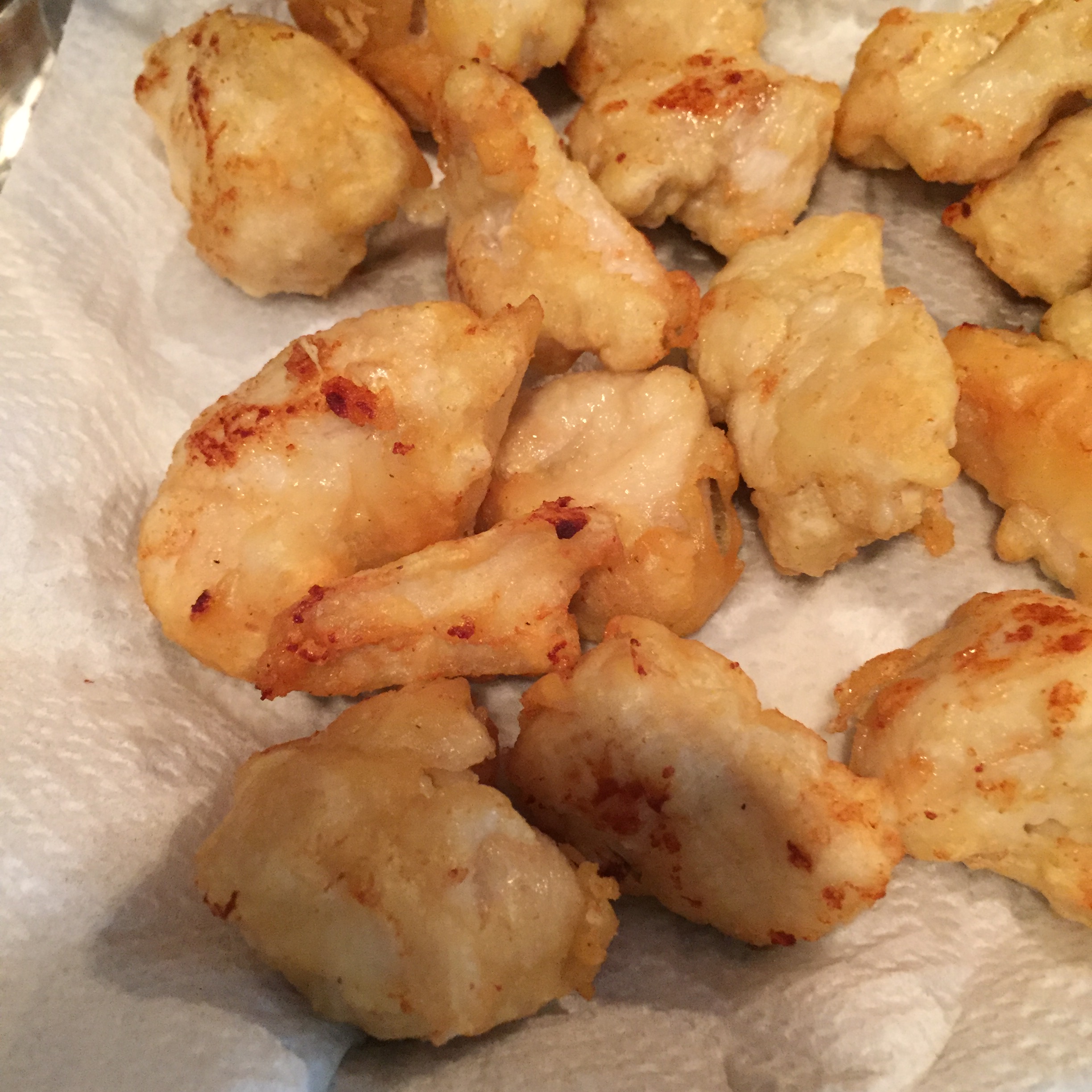 - Make sure oil isn’t too hot and add chicken back into oil in batches to fry again. Golden brown color should deepen with second fry.